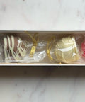 - 2 Purim Oreos dipped in rich Belgian chocolate with white chocolate masks