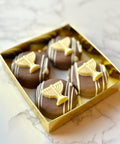 • Box of 4 Milk chocolate covered Oreos topped with white chocolate Menorah